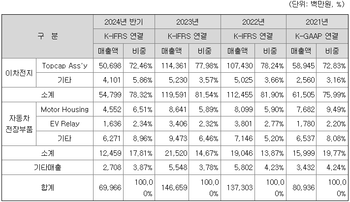 글로벌 업체향 공급을 통해 성장과 수익성을 모두 시현하고 있으며, 향후 북미 시장 동반 진출과 차세대 원통현 전지 부품 개발로 사업 지속성도 확보하고 있다고 하겠습니다.