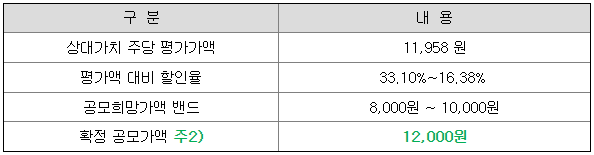 당초 희망 공모가격 상단 10,000원 대비 2,000원(20.0%) 상향 조정된 가격입니다.