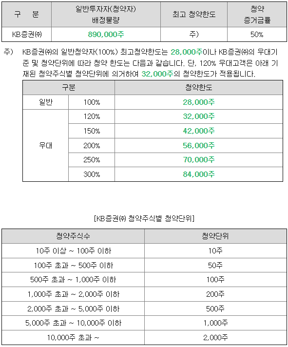 - 청약 가능 증권사 : KB증권