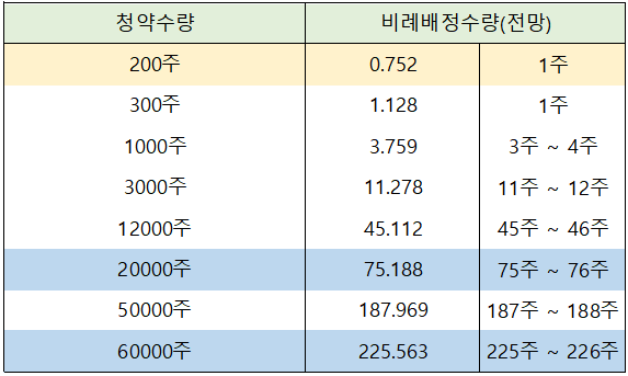 일반 청약자의 최고 청약 한도인 20,000주까지 청약 신청한 경우에는 75주 배정이 예상되며, 우대등급의 최고 청약 한도인 60,000주까지 풀 신청한 경우에는 225주 ~ 226주까지 많은 주식의 배정이 예측되고 있습니다.