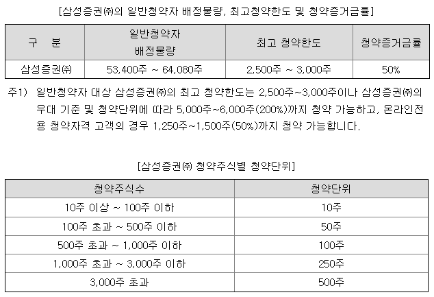 [청약한도 및 청약 단위]