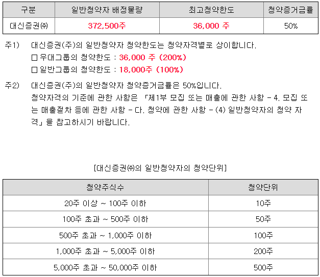 - 청약 가능 증권사 : 대신증권