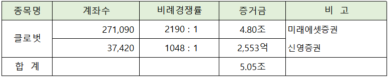 클로벗의 청약에는 모두 5.5조원의 증걱금이 모였습니다.