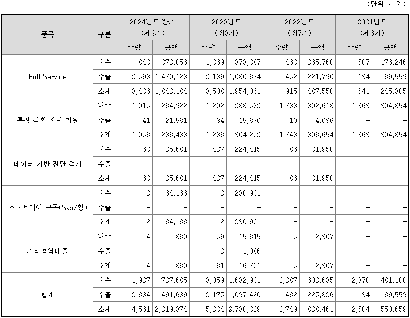 환자의 유전변이 판독을 위한 개별 인공지능 기술은 당사가 환자 진단 검사를 수행하는 과정에서 축적하는 환자 유전체 데이터를 활용하여 지속적으로 개선할 수 있습니다. 즉, 동사의 희귀 유전질환 진단 검사 서비스는 사업을 영위할수록 보다 나은 검사 성능을 확보할 수 있게 되어 고객의 사용의향이 증대되고, 결과적으로 당사의 진단 검사 수행 건수가 증가하는 선순환 구조를 갖춘 사업입니다.