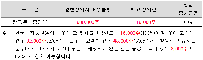 한국투자증권의 일반청약자의 일반 등급 기준 최고 청약 한도는 8,000주입니다.