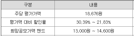 희망 공모가격은 13,000원 ~ 14,600원이고, NH투자증권에서 청약 가능합니다.