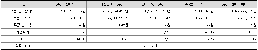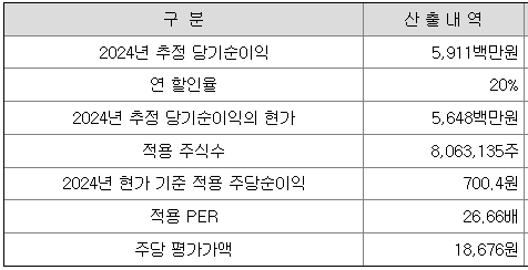 2024년 년간 추정 순익익을 바탕으로 희망 공모가를 산정하였습니다.