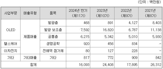 여러 가지 제품 군을 보유하고 있지만 역시 OLED소재의 비중이 큰 기업입니다.