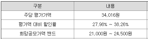 희망 공모가격은 21,000원 ~ 24,500원이고, NH투지증권에서 청약 가능합니다.