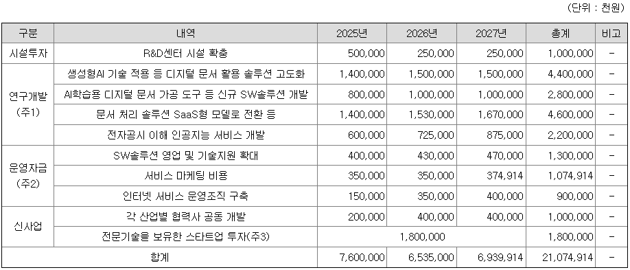 [공모자금 사용계획]