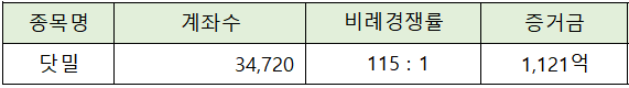 닷밀의 청약에는 1,121억원의 증거금이 모이면서 115 : 1의 비례 경쟁률을 나타냈습니다.