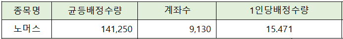 균등 배정은 총 9,130 계좌가 청약에 참가해 균등 배정 수량 141,250주를 감안하면 1인당 15.471주가 배정될 것으로 전망되고 있습니다.