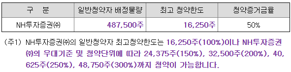 - 청약 가능 증권사 : NH투자증권