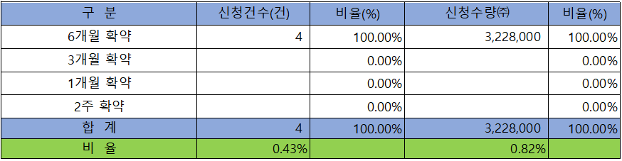 의무 보유 확약 건수는 4건에 3,228,000주의 6개월 확약이 전부였습니다.