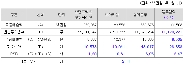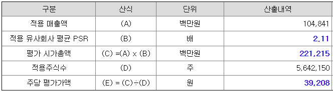 <유사회사의 평균 PSR 배수 산정>