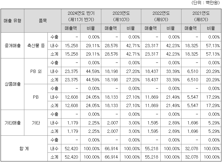 또한, '당당한돈', '당당한우', '당당한닭', '당당한컷' 등의 PB(Private Brand) 상품을 통해 품질과 가격 경쟁력을 동시에 확보하고 있습니다. PB 상품은 당사가 직접 품질을 관리하고 안정적인 공급을 보장함으로써 고객들의 신뢰를 얻고 있으며, 공급 안정성을 높여 고객들을 락인시키는 역할을 톡톡히 수행하고 있습니다.