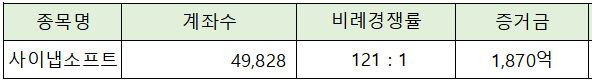 이상 사이냅소프트 청약 신청 결과 속보였습니다.