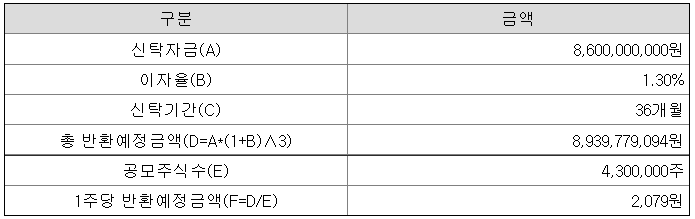 [1주당 반환 예정 금액]