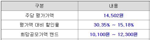 - 공모청약일 : 12월 9일(월) ~ 12월 10일(화)