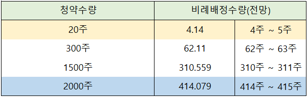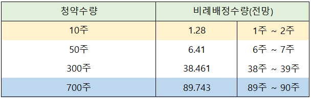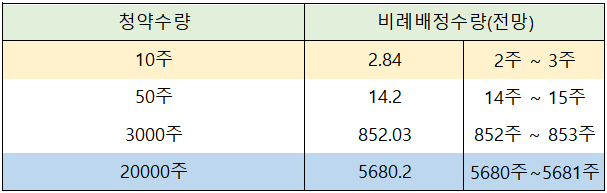 증권사별로 청약 주식 수별 비례 배정 전망은 아래 표와 같습니다.