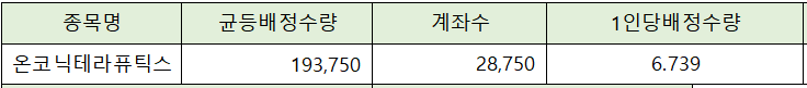 이상 온코닉테라퓨틱스 청약 신청 결과 속보였습니다.