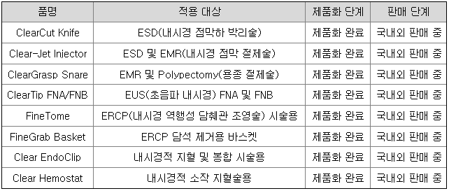 파인메딕스는  이들 주요 제품군을 중심으로 국내외 시장에서 활발하게 판매를 진행하고 있으며, 특히 ESD 및 EMR 시술에 필요한 나이프와 인젝터 제품군은 국내외에서 높은 평가를 받고 있습니다. ClearCut Knife 제품군의 경우, 국내 시장 점유율 20% 이상을 기록하고 있으며, 일본과 유럽을 포함한 주요 해외 시장에서도 긍정적인 반응을 얻고 있습니다.