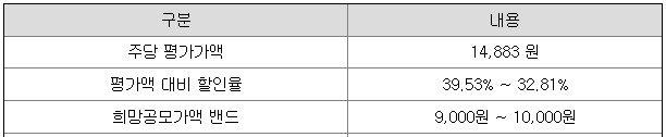 희망 공모가격은 9,000원 ~ 10,000원이고, 한국투자증권에서 청약 가능합니다.