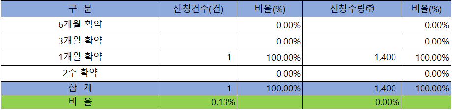 의무 보유 확약 건수는 1건에 1,400주로 큰 의미가 없는 수치입니다.