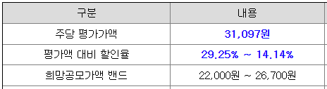 희망 공모가격은 22,000원 ~ 26,700원이고, 미래에셋증권과 삼성증권에서 청약 가능합니다.