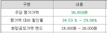 희망 공모가격은 24,000원 ~ 26,000원이고, 삼성증권에서 청약 가능합니다.
