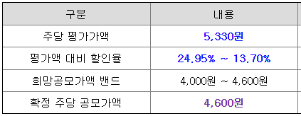 당초 희망 공모가격 상단으로 결정된 것입니다.
