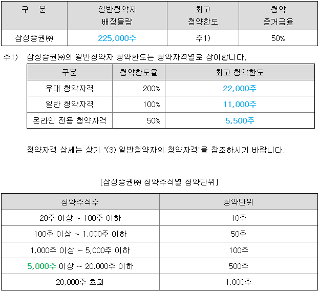 - 청약 가능 증권사 : 삼성증권