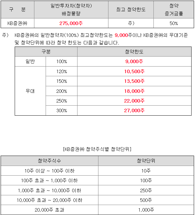 - 청약 가능 증권사 : KB증권