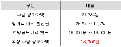 당초 희망 공모가격 상단으로 결정된 것입니다.