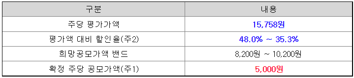 공모가 하단 대비 3,200원이나 내린 확정 공모가로 투자자들의 관심을 끌 수 있을지 궁금한 대목입니다.