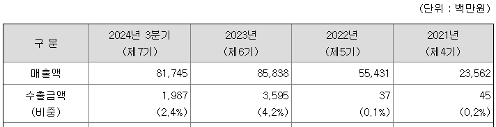 지속적인 당기순이익과 2022년 150억원 유상증자 등의 사유로 발생하는 현금 유입 및 매출채권 등의 증가로 유동자산이 증가하였으나, 선수금 부채 인식 규모 증가에 따라 유동비율이 소폭 감소하고 있습니다. 그에 따라 부채비율도 2022년 이후 지속적으로 증가하고 있습니다.