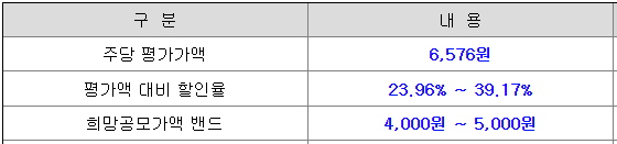 - 공모청약일 : 1월 20일(월) ~ 1월 21일(화)