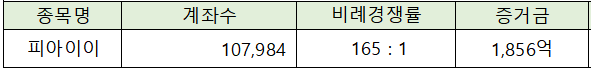 피아이이의 청약에는 1,856억원의 증거금이 모이면서 165 : 1의 비례 경쟁률을 나타냈습니다.
