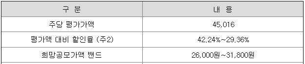 서울보증보험의 희망 공모가격은 회사의 주당 평가가액 45,016원에서 29.36% ~ 42.24% 할인한 가격입니다.