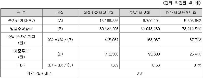 < 유사회사의 평균 PBR 산정>