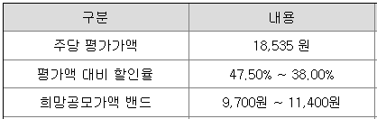 - 공모청약일 : 2월 3일(월) ~ 2월 4일(화)