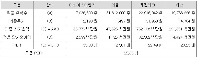 <유사회사의 평균 PER 배수 산정>