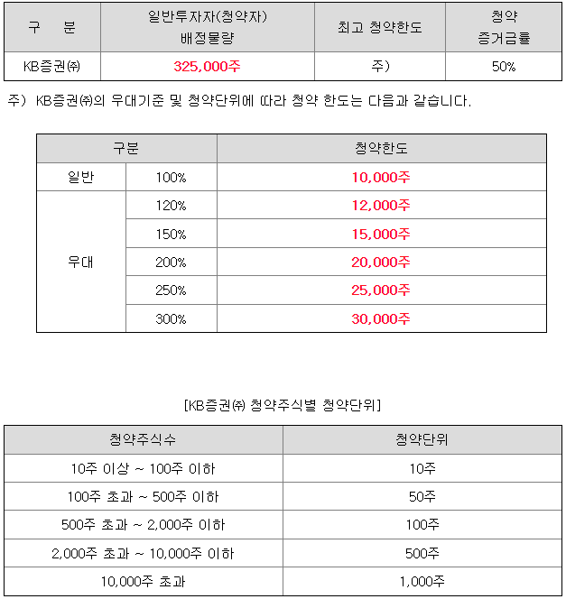 - 청약 가능 증권사 : KB증권