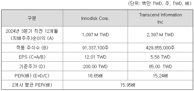 <유사회사의 평균 PER 배수 산정>