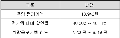 디바이스의 희망 공모가격은 회사의 주당 평가가액 13,942원에서 40.11% ~ 48.36% 할인한 가격입니다.