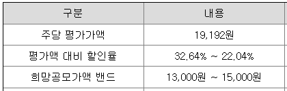 심플랫폼의 희망 공모가격은 회사의 주당 평가가액 19,192원에서 22.04% ~ 32.64% 할인한 가격입니다.
