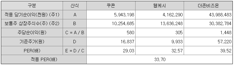 <유사회사의 평균 PER 배수 산정>