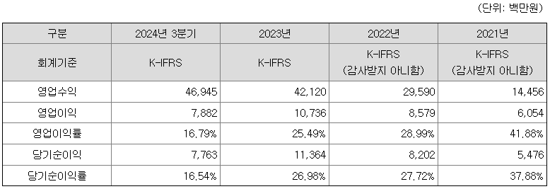 2024년 3분기의 경우 사업 확장을 위한 신규사업 진출을 위한 투자 및 메시징 사업부 인수효과로 인해 수익성이 다소 악화되었으나, 향후 신규사업의 확장 및 우수한 기술력과 영업력을 기반으로 한 동남아시아 시장 진출 본격화 등을 계획하고 있어, 동사의 매출 성장 및 높은 영업이익률은 지속될 것으로 전망됩니다.