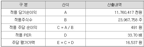 <유사회사의 평균 PER 배수 산정>