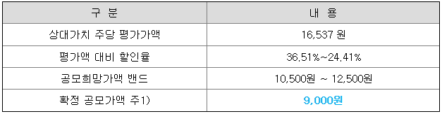 당초 희망 공모가격 하단 10,500원 대비 1,500원(14.23%) 하향 조정된 가격으로 결정된 것입니다.